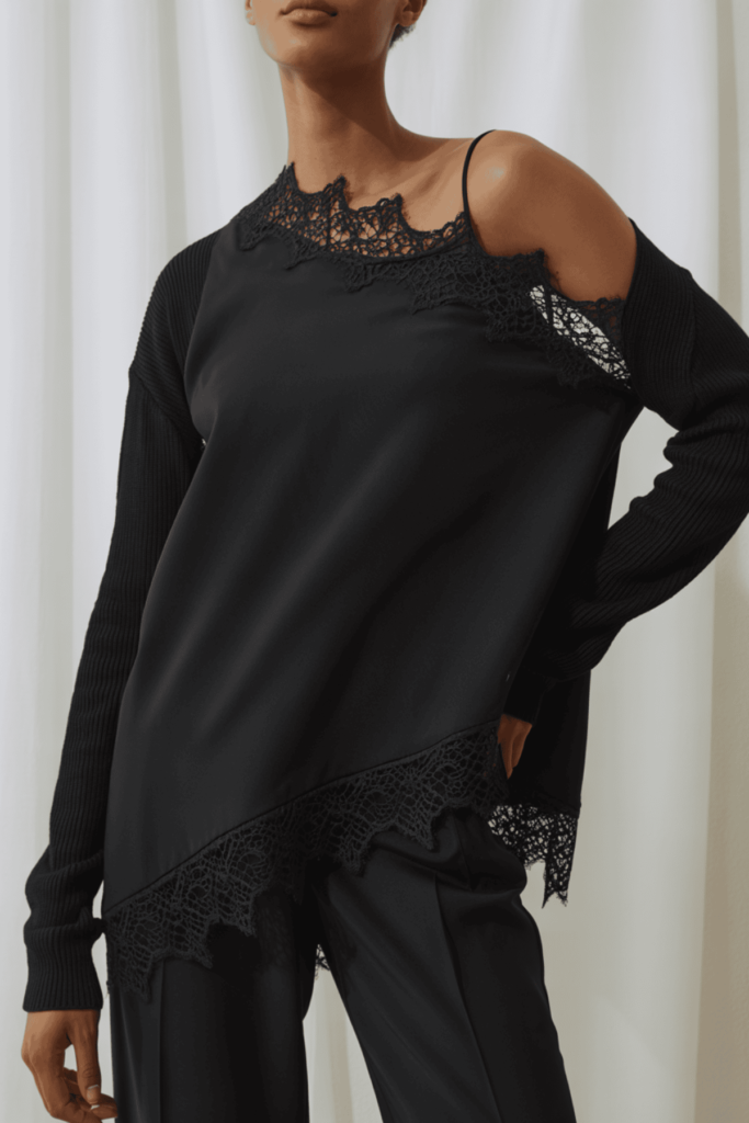 Ha egy kicsit belenézünk a 2026-os tavaszi trendekbe nekem nagyon sokszor visszaköszön például az aszimmetrikus top csipke díszítéssel.